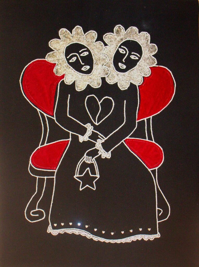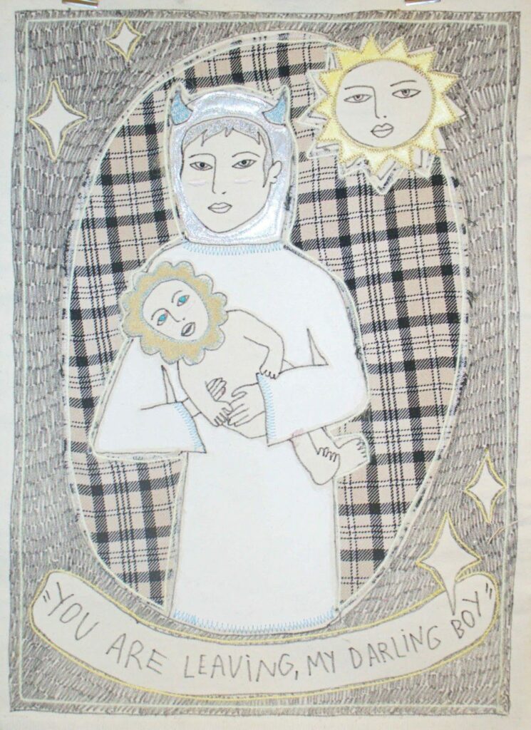Applique textile sur toile en coton, feutre, laine.